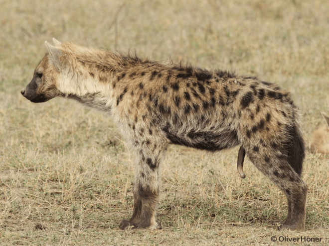 Bei Tüpfelhyänen-Weibchen ist die Klitoris zu einem ‘Pseudopenis’ verlängert. Dieser sieht dem Penis der Männchen sehr ähnlich und kann auch erigiert werden.